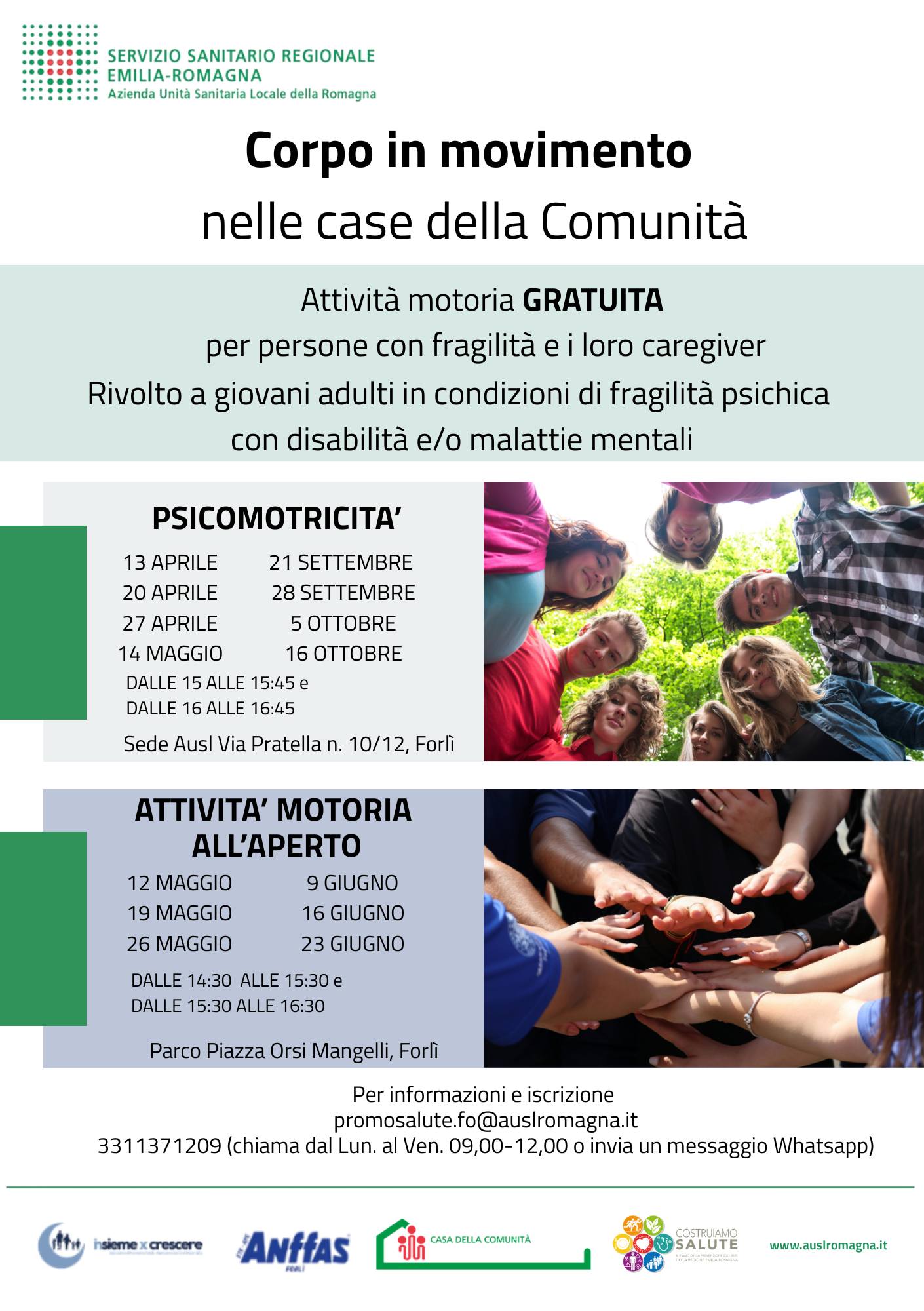 Prende avvio nel Distretto di Forlì “Corpo in movimento nelle Case della Comunità”, un percorso di attività motoria gratuita promosso dall’Ausl Romagna insieme agli Enti del Terzo Settore, Anffas Forlì APS e Insieme x Crescere APS ASD (quest’ultima capofila del progetto). L’iniziativa è dedicata a giovani adulti in condizioni di fragilità psichica, con disabilità e/o disturbi della sfera mentale, ed è aperta anche a familiari, caregiver e figure di supporto.