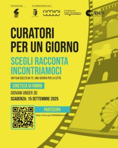 Curatori per un giorno è l’iniziativa della Cineteca di Rimini rivolta a giovani under 30 appassionati della settima arte, nella quale i ragazzi avranno l’opportunità di scegliere un film da proiettare in sala, introdurlo agli spettatori e quindi progettare una serata a tema cinematografico. Le iscrizioni sono aperte: si può aderire inquadrando l’apposito QR Code (di seguito) o compilando il modulo online “Curatori per un giorno” – Call per under 30entro lunedì 15 settembre 2025.