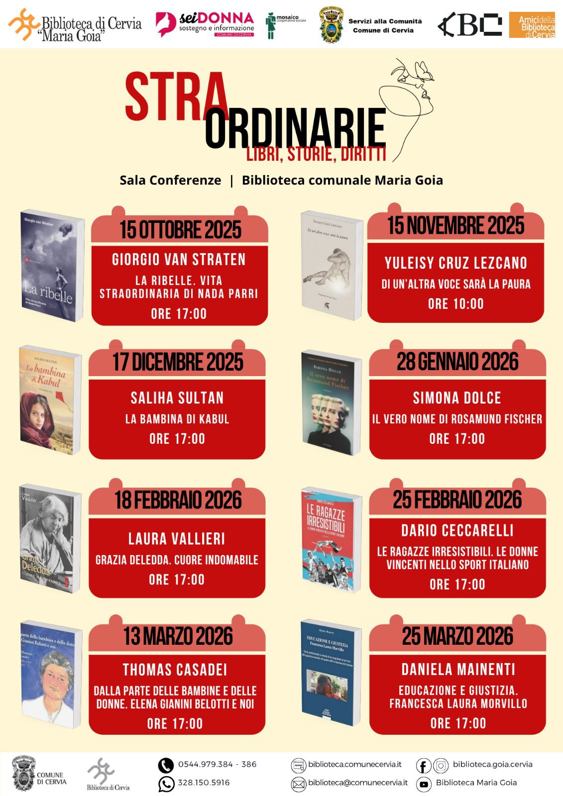 La Biblioteca comunale Maria Goia, lo Sportello SeiDonna, in collaborazione con l’Associazione Amici della Biblioteca di Cervia, organizzano e promuovono la quarta edizione della rassegna “StraOrdinarie. Libri, storie, diritti”.