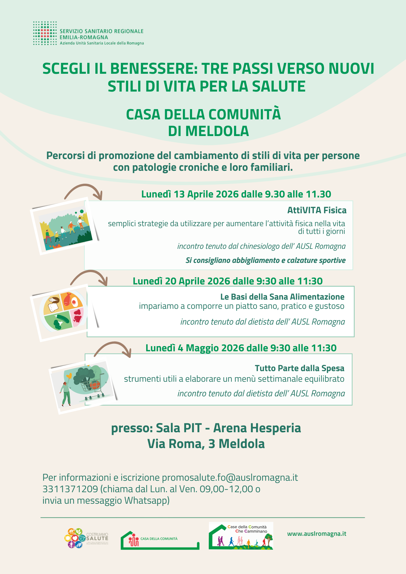 Il Servizio Igiene e Sanità Pubblica, in collaborazione con il Dipartimento di Cure Primarie di Forlì Cesena, organizza con la Casa della Comunità di Meldola un ciclo di incontri dedicati alla promozione della salute e alla prevenzione come parte integrante del percorso terapeutico assistenziale.