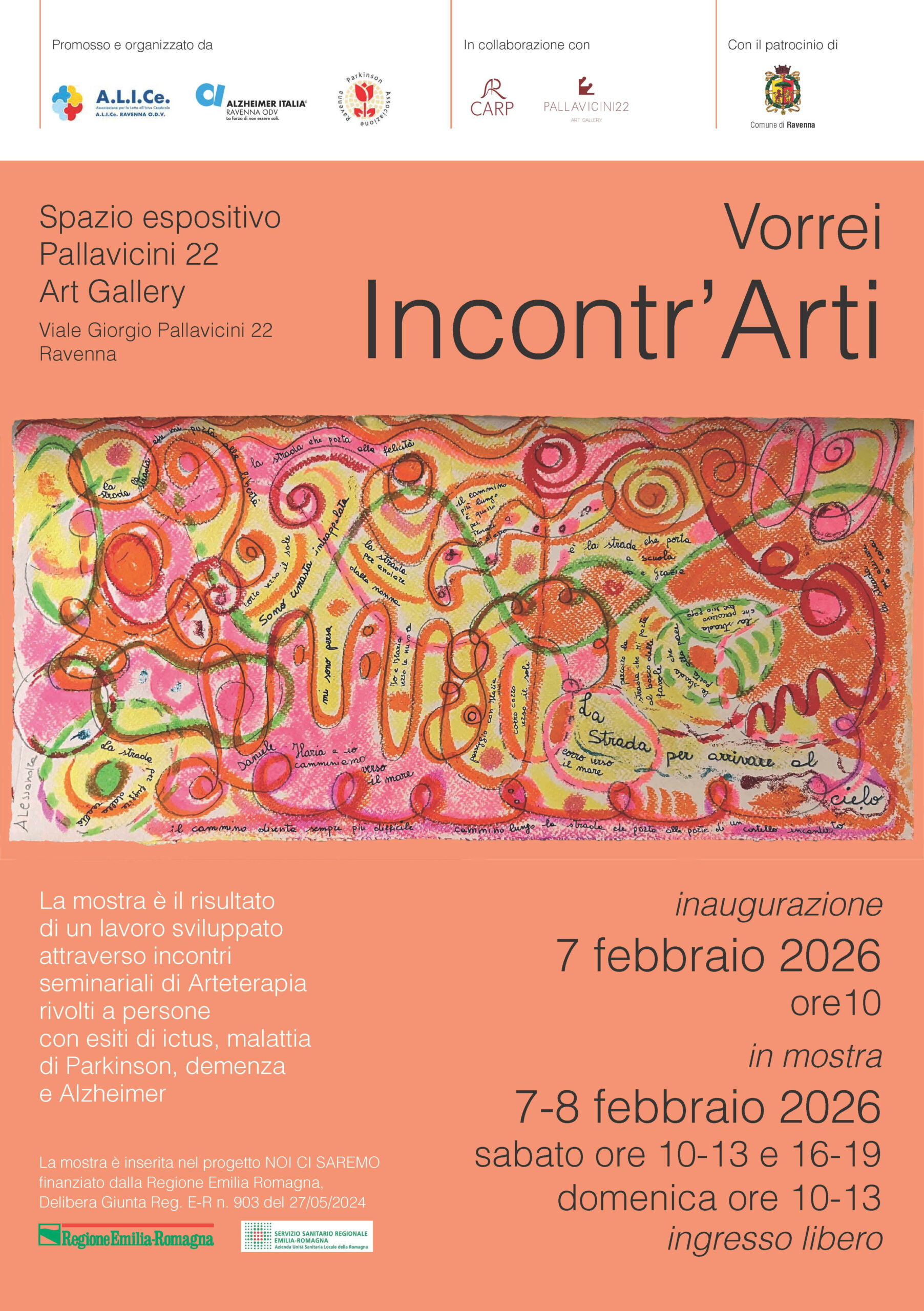 L’iniziativa è promossa e organizzata da A.L.I.Ce Ravenna Odv, Alzheimer Ravenna Odv e Ravenna Parkinson Aps, in collaborazione con CARP e Pallavicini 22 Art Gallery, con il patrocinio del Comune di Ravenna.